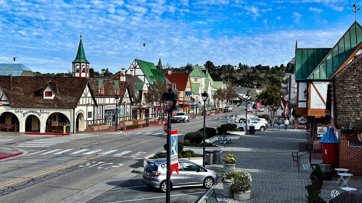 - 1911년 덴마크 이민자들이 정착하면서 형성된 이국적인 유럽 감성의 관광지입니다. 풍차, 목조 건물, 빨간 지붕의 북유럽 스타일 건축물이 어우러져